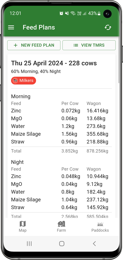 This helps you by providing feed plans to others on your farm, does the math on the weights that you'll be putting into the wagon and splits feed for night/day splits if needed.