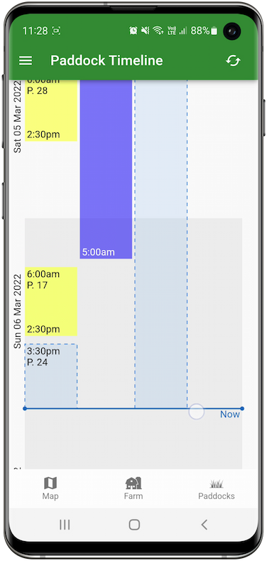 The grazing timeline allows you to visualise your grazings by time over your whole farm.