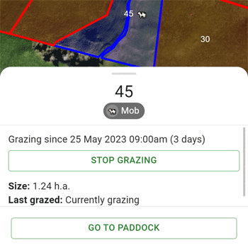 From here you can start/end a grazing, view the current grazing and view tags currently on the paddock