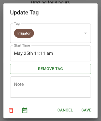 - Remove/end the tag by tapping the "End Tag" button