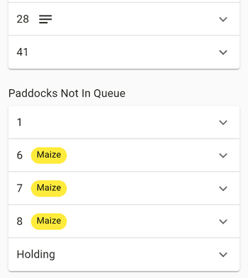 Removing a paddock from the queue will add it to a "Paddocks Not In Queue" section at the bottom of the queue. Paddocks out of the queue can still be grazed, but you will be shown a warning when you do so.