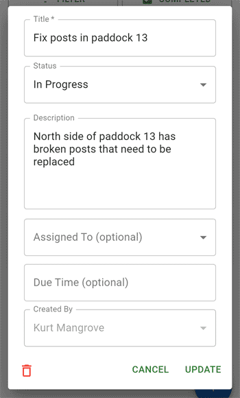 Tasks allow you to keep track of things that need to happen on your farm.
